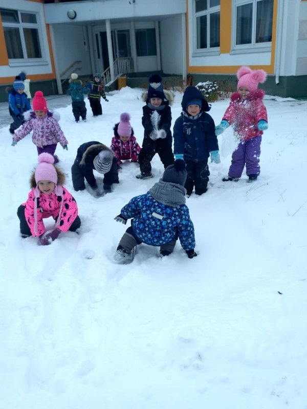 На прогулке наши дошколята продолжили познавать белую, сказочную гостью - зимушку. Игры со снегом, лепка снеговиков, оставили много впечатлений нашим деткам.